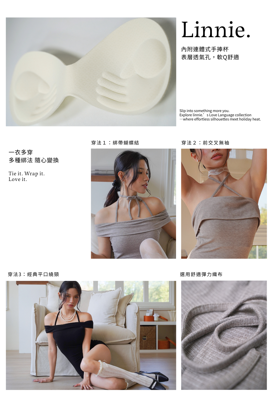 以穿上就能擁有Linnie.隨性的性感為主要目標,