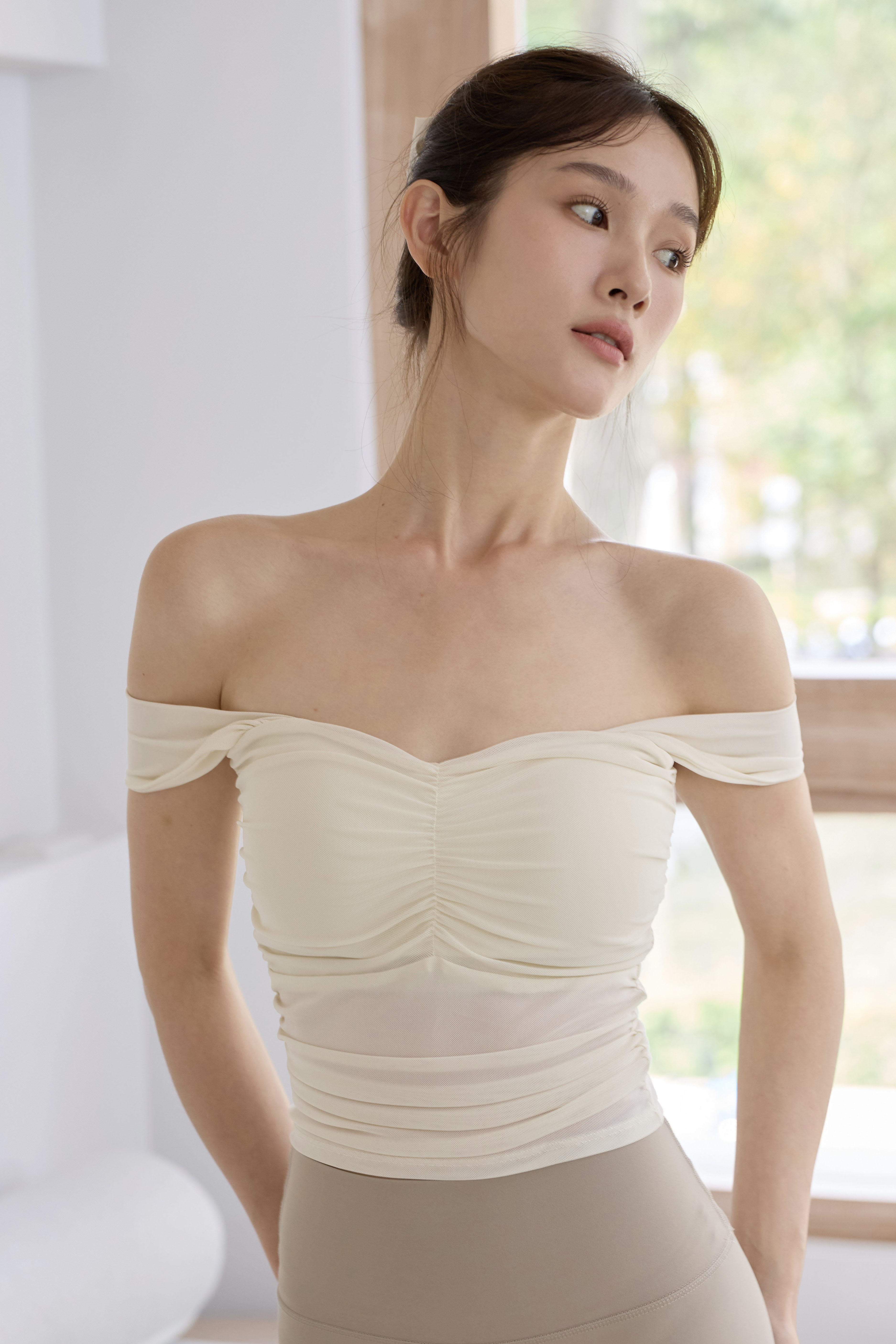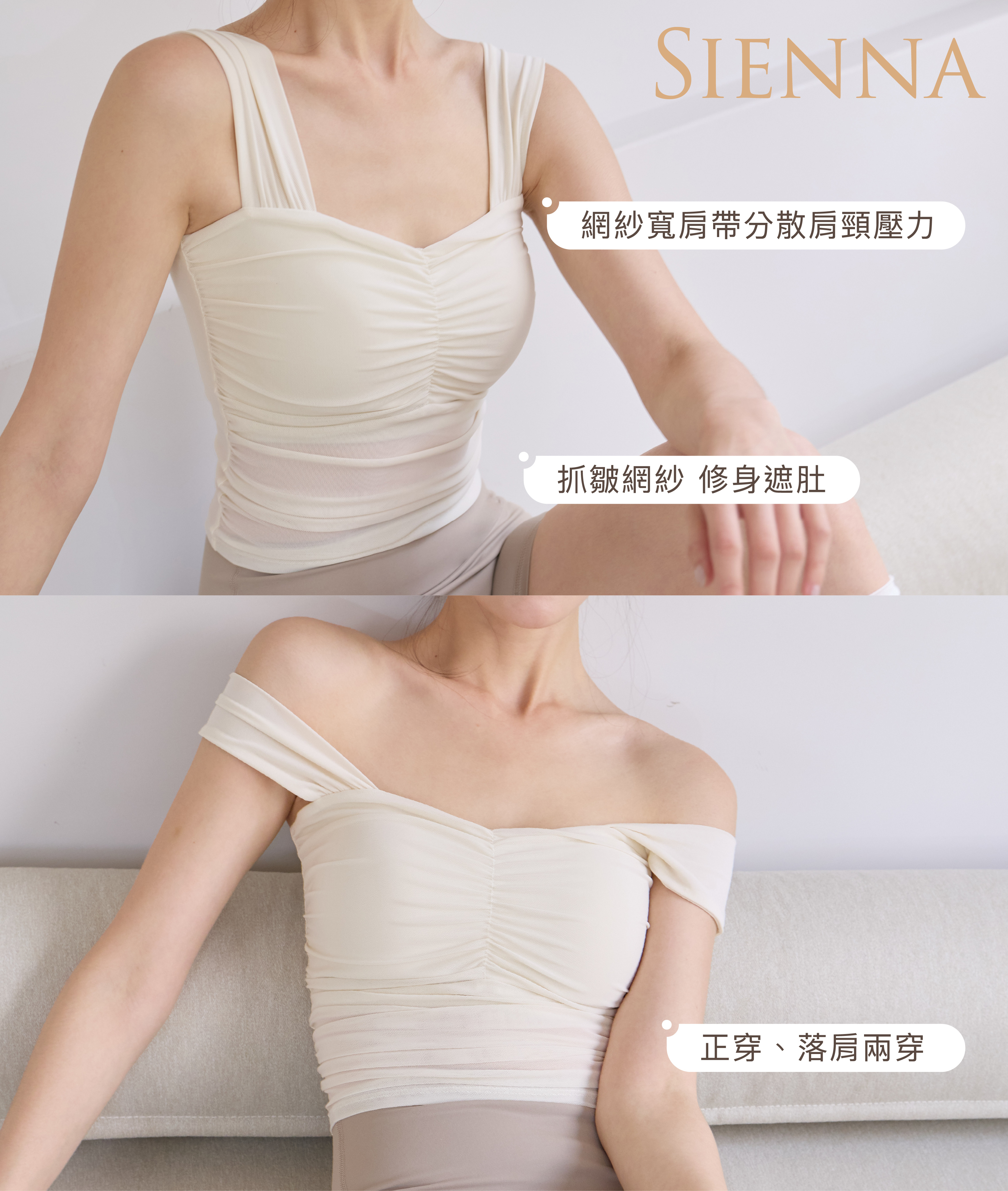 Sienna裸紗寬肩帶機能上衣 / 白